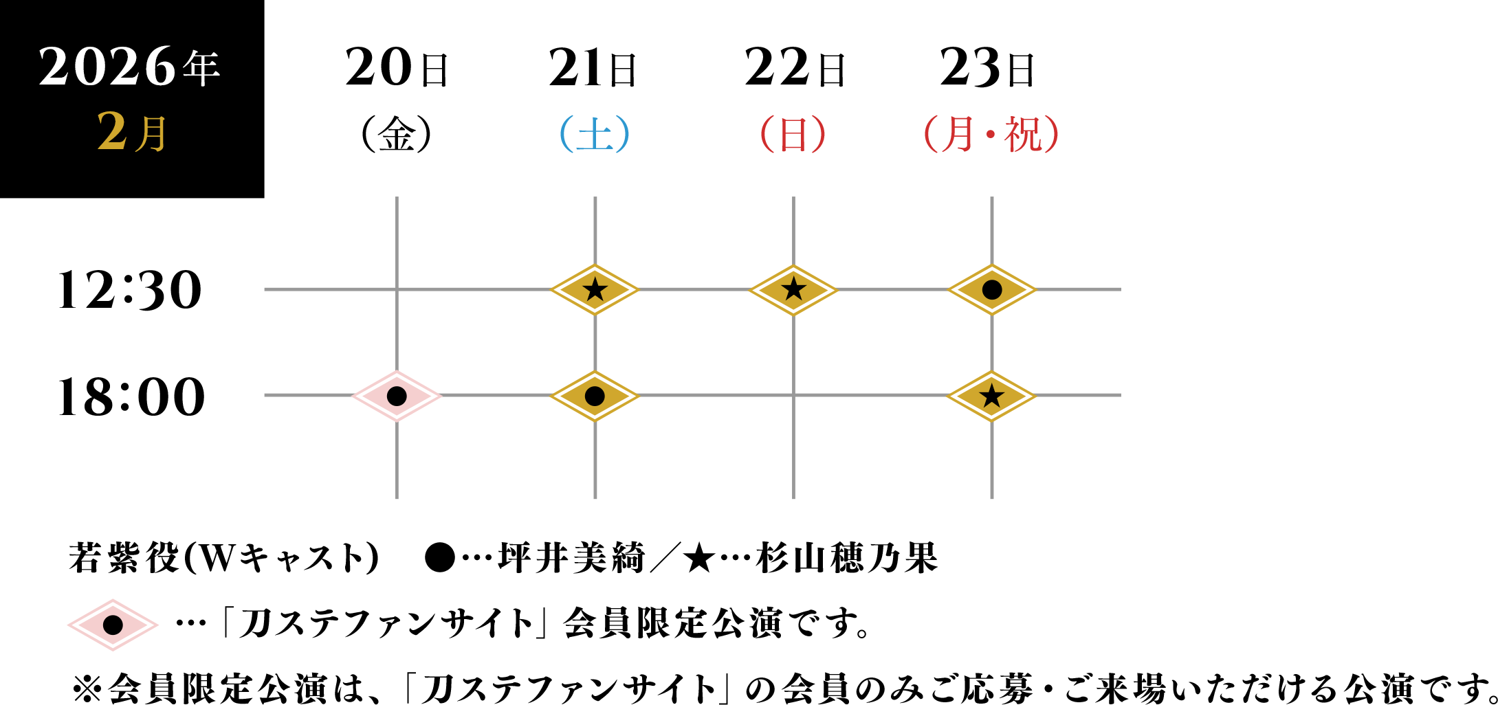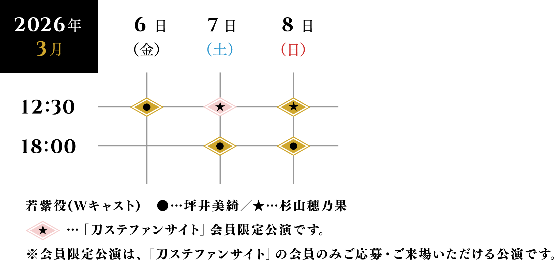 ※お申し込みの詳細は「刀ステファンサイト(https://fc.stage-toukenranbu.jp/)」内でご確認ください。※「刀ステファンサイト」1会員様につき、通常公演、「刀ステファンサイト」会員限定公演をそれぞれお申し込みいただけます。